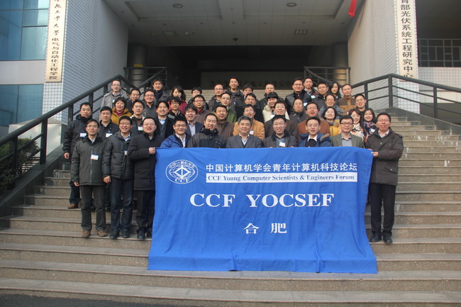 2015年元月17日上午,CCF YOCSEF合肥在永利官网逸夫楼408会议室举行2015-2016年度换届选举会议。出席会议的人员包括CCF YOCSEF总部主席胡春明、副主席韩银和、侯任主席谭晓生、侯任副主席田丰、总部联系AC委员操晓春,还有来自总部和兄弟分论坛的何万青、李朝锋、山世光、陈健、吴迪、秦品乐、王长波、邬向前、孙国梓、郭威、董天阳、刘钊等。合肥市副市长、304.cam永利集团副校长、CCF合肥分部主席刘晓平,CCF合肥分部副主席、中国科学技术大学计算机学院副院长陈恩红特邀出席会议。会议由操晓春、YOCSEF合肥现任主席汤进联合主持。
