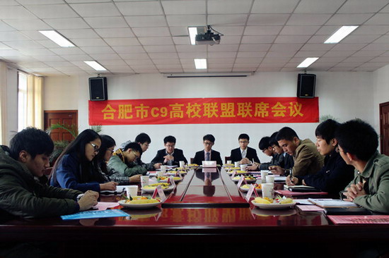 12月14日上午,由永利官网团学组织发起的合肥市2014年C9高校联盟联席会议在翡翠湖校区管委会第一会议室举行,来自中国科技大学、安徽大学等9所高校的计算机相关院系学生会主席参加了本次会议。